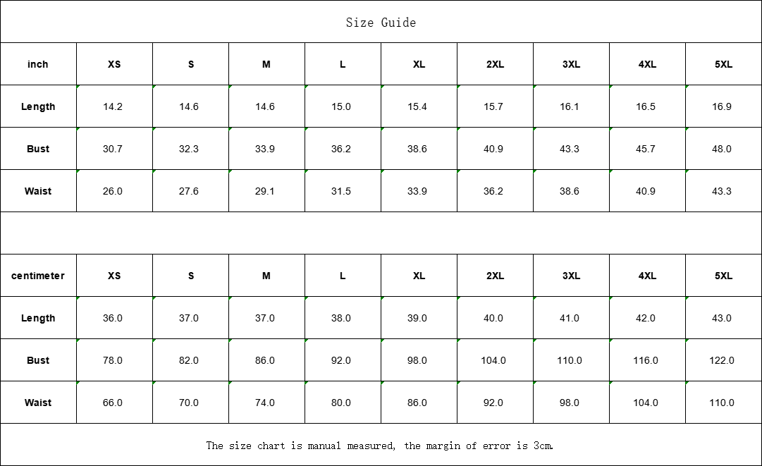 | centimeter | XS | S | M | L | XL | 2XL | 3XL | 4XL | 5XL |